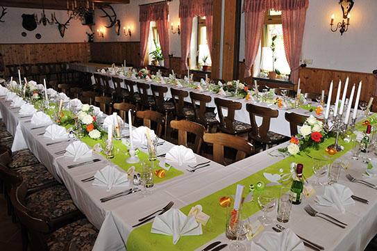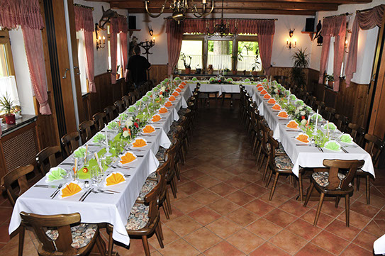 Der kleine Saal ist ideal für Familienfeiern, Klassentreffen, Vereinsfeiern und bietet für 70 Pers. Platz. Er kann auch Für kleinere Feiern durch eine Schiebetür geteilt werden. Er bietet eine sehr gemütliche Atmosphäre durch seine schöne Holzdecke und den direkten Zugang zum Biergarten. Damit Ihre Feier bei allen in guter Erinnerung bleibt, werden alle Details vorab mit Ihnen besprochen. Egal ob Sie nach Karte, eine Menüfolge oder ein Büfett wünschen.